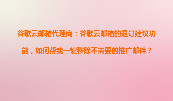 2025-10-23谷歌云邮箱代理商指南:利用退订建议功能一键移除推广邮件 一、谷歌云邮箱退订建议功能的核心作用 谷歌云邮箱(GSuite/Gmail)的退订建议功能(UnsubscribeSuggestions)是内置于智能算法中的邮...
