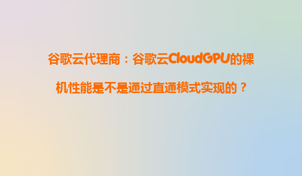 谷歌云代理商解析:谷歌云CloudGPU的裸机性能是否通过直通模式实现? 一、谷歌云CloudGPU的核心性能优势 谷歌云(GoogleCloudPlatform,GCP)的CloudGPU服务以其...