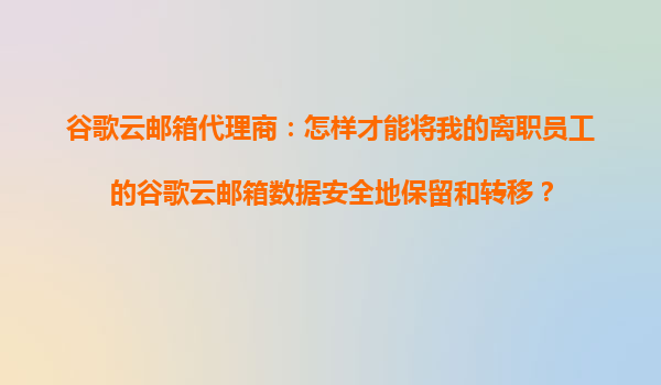 2025-10-22谷歌云邮箱代理商指南:安全保留和转移离职员工邮箱数据 引言 在企业运营过程中,员工流动是不可避免的。当员工离职时,如何安全、高效地保留和转移其谷歌云邮箱(GoogleWorkspace)中的数据...