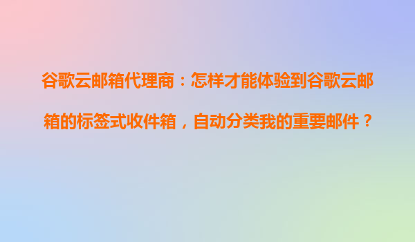 2025-10-22谷歌云邮箱代理商指南:如何体验标签式收件箱与自动分类功能 一、谷歌云邮箱的标签式收件箱是什么? 谷歌云邮箱(GmailforBusiness)的标签式收件箱是一项基于人工智能的邮件管理功能,能够自动...