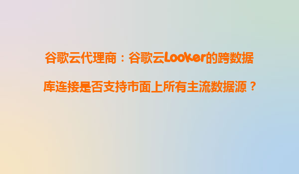 谷歌云代理商:谷歌云Looker的跨数据库连接是否支持市面上所有主流数据源? 一、Looker的跨数据库连接能力 谷歌云Looker作为一款领先的商业智能(BI)和数据可视化工具,其核心优势之一在于强大的跨数据库连...