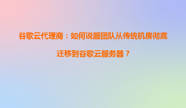 2025-10-21谷歌云代理商:如何说服团队从传统机房彻底迁移到谷歌云服务器? 一、传统机房的局限性 传统机房通常面临以下问题: 高硬件成本:需购买服务器、网络设备及维护设施,初期投入大。 运...