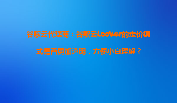 谷歌云代理商解析:谷歌云Looker的定价模式是否更加透明,方便小白理解? 引言 随着数据驱动决策的普及,越来越多的企业开始关注商业智能(BI)工具的选型。谷歌云旗下的Looker作为...