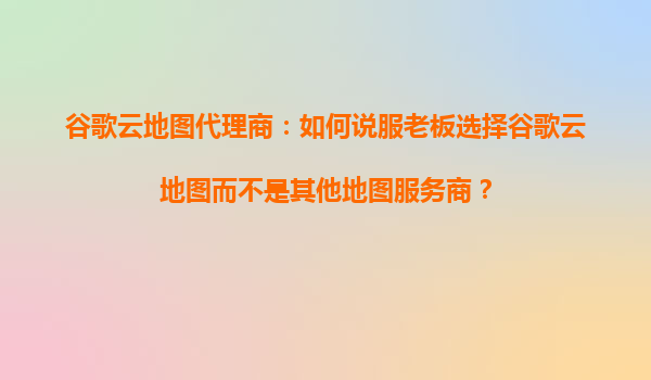 2025-10-21如何说服老板选择谷歌云地图而不是其他地图服务商? 引言 在当今数字化时代,地图服务已成为企业运营不可或缺的一部分。无论是物流、零售、房地产还是旅游行业,选择一款可靠、高效的地图服务商至关重要。作为...