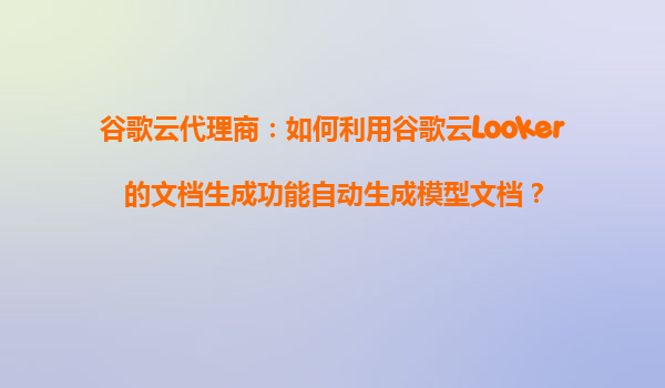 2025-10-21谷歌云代理商:如何利用谷歌云Looker的文档生成功能自动生成模型文档 引言 在当今数据驱动的商业环境中,高效管理和维护数据模型文档是企业提升数据治理能力的关键。谷歌云的Looker平台不...