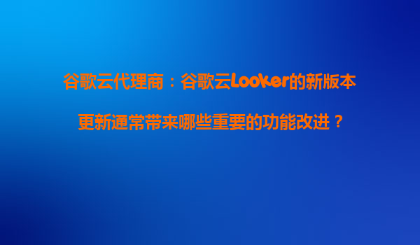 2025-10-21谷歌云代理商:谷歌云Looker的新版本更新通常带来哪些重要的功能改进? 一、Looker与谷歌云的核心优势 作为谷歌云的核心数据分析平台,Looker深度整合了谷歌云的基础设施优势,包括全球化...