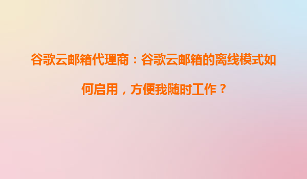 2025-10-18谷歌云邮箱代理商解析:如何启用谷歌云邮箱离线模式,提升工作效率? 一、谷歌云邮箱离线模式简介 谷歌云邮箱(Gmail)作为全球领先的企业级邮箱服务,其离线模式允许用户在无网络连接时仍能查看、撰写和管...