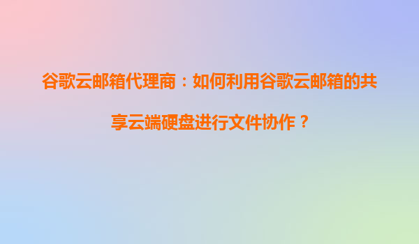 2025-10-18谷歌云邮箱代理商:如何利用谷歌云邮箱的共享云端硬盘进行文件协作 引言 在当今的数字化工作环境中,团队协作的效率直接影响到企业的生产力。谷歌云邮箱(GoogleWorkspace)作为全球领先的办公套件,提供...