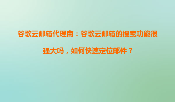 2025-10-18谷歌云邮箱代理商:谷歌云邮箱的搜索功能很强大吗,如何快速定位邮件? 谷歌云邮箱的搜索功能优势 作为全球领先的企业邮箱服务提供商,谷歌云邮箱(GmailforBusiness)凭借其强大的搜索功...