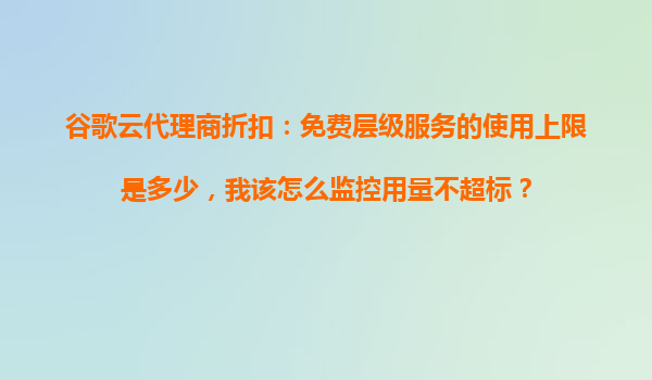 2025-10-18谷歌云代理商折扣:免费层级服务的使用上限与用量监控指南 一、谷歌云免费层级的服务上限详解 谷歌云(GoogleCloudPlatform,GCP)为开发者提供12个月的免费试用期和永久免费层级(AlwaysFreeTier)服...