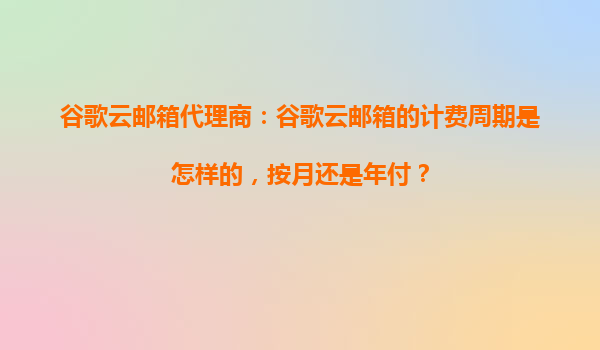 谷歌云邮箱代理商:深度解析谷歌云邮箱的计费周期与核心优势 一、谷歌云邮箱的计费周期详解 谷歌云邮箱(GoogleWorkspace,原GSuite)作为企业级邮箱解决方案,其计费模式兼具灵活性和多样性。代理商提供...