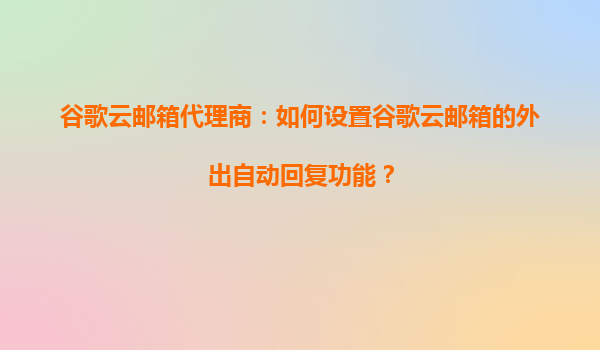 2025-10-17谷歌云邮箱代理商指南:轻松设置外出自动回复功能 作为现代企业高效沟通的核心工具,谷歌云邮箱(GmailforBusiness)凭借其稳定性和丰富的功能备受企业青睐。本文将详细介绍如何通过谷歌云邮箱代理商或管理员账户...
