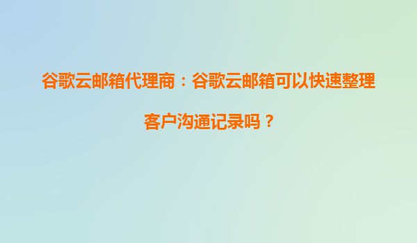 2025-10-15谷歌云邮箱代理商分析:如何用谷歌云邮箱高效整理客户沟通记录? 为什么需要高效整理客户沟通记录? 在现代商业环境中,客户沟通记录的整理不仅关系到工作效率,更是企...
