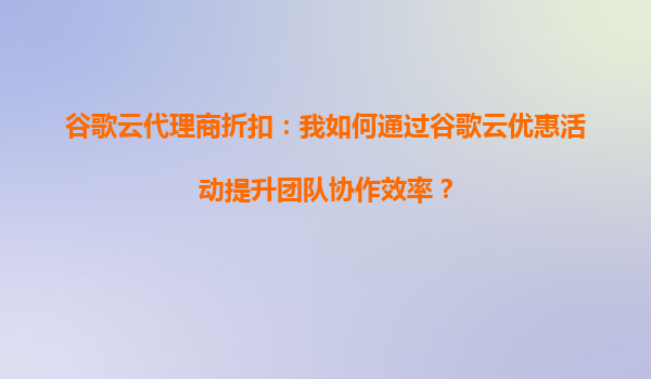 2025-10-15谷歌云代理商折扣:如何通过谷歌云优惠活动提升团队协作效率? 引言 在全球数字化转型的浪潮中,云计算已成为企业提升协作效率的关键工具。谷歌云(GoogleCloud)凭借其强大的基础...