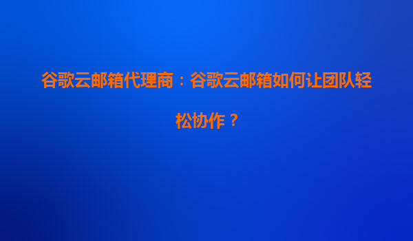 谷歌云邮箱代理商:谷歌云邮箱如何让团队轻松协作? 引言 在当今快节奏的商业环境中,高效的团队协作是企业成功的关键。谷歌云邮箱(GoogleWorkspace)作为一款强大的企业级电子邮件和协作工...