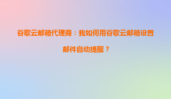 2025-10-15谷歌云邮箱代理商指南:如何利用谷歌云邮箱设置邮件自动提醒 一、谷歌云邮箱的独特优势 谷歌云邮箱(GoogleWorkspace)作为企业级邮件解决方案,凭借其高可靠性、智能功能和深度集成能力,成为全球企业首选...