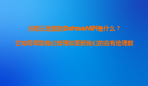 谷歌云地图DatasetAPI概述 谷歌云地图DatasetAPI是谷歌云平台提供的一项强大服务,旨在帮助用户高效地管理和更新自有地理数据。该API允许开发者将复杂的地理数据集成到谷歌地图服务中,提供了一系列工具和功能,简...