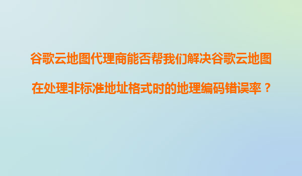 2025-11-10谷歌云地图代理商如何助力解决非标准地址地理编码难题 在全球数字化进程中,地理信息系统(GIS)的重要性日益凸显。然而,非标准地址格式的处理一直是行业痛点,导致地理编码错误率居高不下。作为全球领先的云服务...