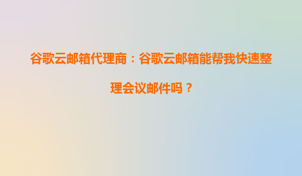 2025-10-15谷歌云邮箱代理商:谷歌云邮箱能帮我快速整理会议邮件吗? 谷歌云邮箱的高效会议邮件管理能力 谷歌云邮箱(GmailforBusiness)凭借人工智能技术和强大的云端功能,为用户提供了高效的会议邮...