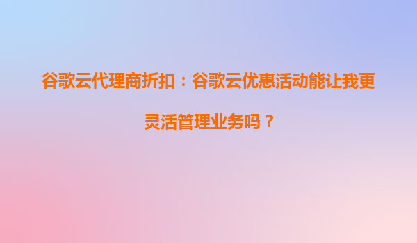 2025-10-14谷歌云代理商折扣:谷歌云优惠活动能让我更灵活管理业务吗? 引言 在当今数字化快速发展的时代,云计算已成为企业提升效率、降低成本、增强灵活性的关键工具。谷歌云作为全球领先的云服务提供商之...