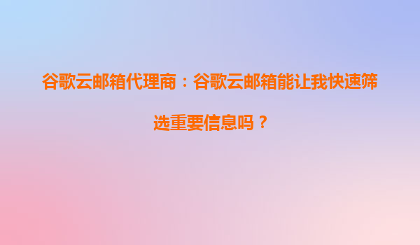 2025-10-12谷歌云邮箱代理商:谷歌云邮箱能让我快速筛选重要信息吗? 引言:信息爆炸时代的挑战 在当今数字化时代,电子邮件已成为企业和个人沟通的核心工具。然而,随着...