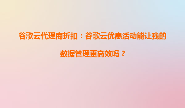 2025-10-11谷歌云代理商折扣:谷歌云优惠活动能让我的数据管理更高效吗? 在当今数字化时代,数据管理已成为企业运营的核心环节。无论是初创公司还是大型企业,高效的数据管理不仅能提升业务效率,还能降低成本并增强竞争力...