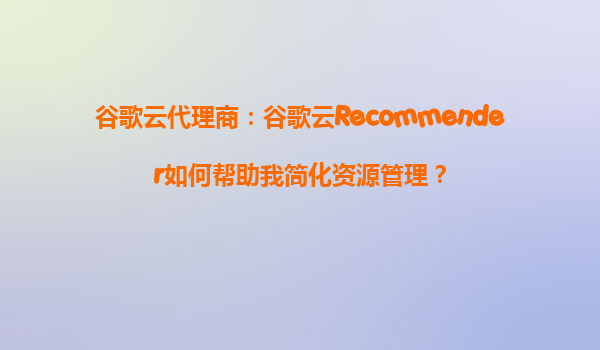 2025-10-10谷歌云代理商:谷歌云Recommender如何帮助我简化资源管理? 一、谷歌云Recommender的核心价值 谷歌云Recommender是谷歌云平台(GCP)内置的AI驱动优化工具,通过机器学习分析用户资源使用模式,自动生成定制化...