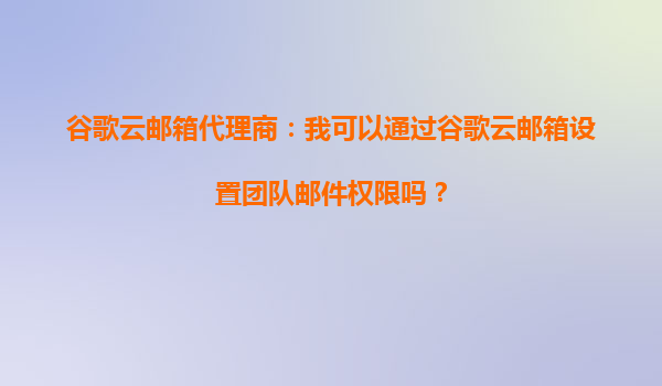2025-10-09谷歌云邮箱代理商:如何通过谷歌云邮箱设置团队邮件权限 一、谷歌云邮箱的团队协作优势 谷歌云邮箱(GoogleWorkspace)作为企业级邮件解决方案,凭借其强大的协作功能和灵活的权限管理...