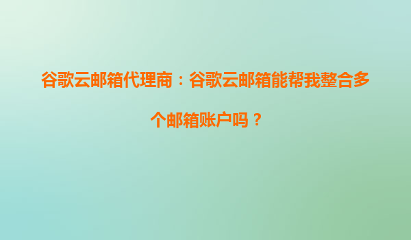 2025-10-09谷歌云邮箱代理商:谷歌云邮箱能帮我整合多个邮箱账户吗? 在现代工作和生活中,许多人拥有多个邮箱账户,可能是个人邮箱、工作邮箱或其他用途的邮箱。管理这些分散的邮箱不仅耗时,还容易遗漏重要信息。那么,...