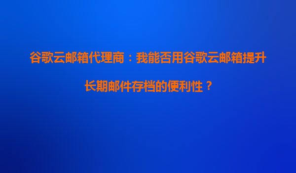 2025-10-07谷歌云邮箱代理商:如何利用谷歌云邮箱提升长期邮件存档的便利性? 引言 在数字化办公时代,电子邮件不仅是沟通工具,更是企业重要的数据资产。如何高效、安全地存档邮件,并确保长期可...