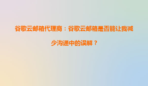2025-10-07谷歌云邮箱代理商:谷歌云邮箱是否能让我减少沟通中的误解? 在现代商业环境中,高效的沟通是企业成功的关键因素之一。然而,由于信息传递的不准确或延迟,沟通中的误解常常导致项目延误、客户不满甚至经济损失...