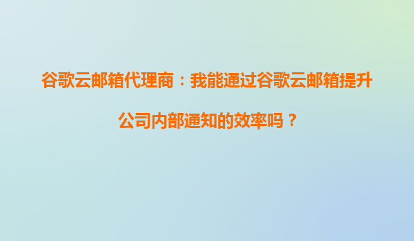 2025-10-07谷歌云邮箱代理商:如何通过谷歌云邮箱提升公司内部通知效率? 一、企业沟通的痛点与谷歌云邮箱的解决方案 在快节奏的商业环境中,高效的企业内部沟通是确保业务顺畅运行的关键。然而,许多公司仍面临以下...