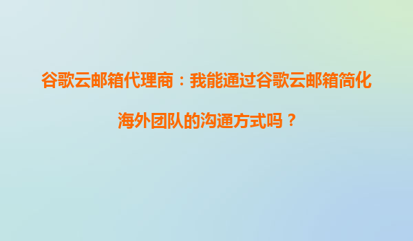 2025-10-07谷歌云邮箱代理商:我能通过谷歌云邮箱简化海外团队的沟通方式吗? 一、谷歌云邮箱的核心优势 谷歌云邮箱(GoogleWorkspace,原GSuite)作为全球领先的企业级邮箱解决方案,凭借其强大的功能和...