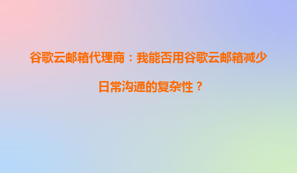 2025-10-07谷歌云邮箱代理商:我能否用谷歌云邮箱减少日常沟通的复杂性? 在现代商业环境中,高效的沟通工具是企业成功的关键因素之一。谷歌云邮箱(GoogleWorkspace,原GSuite)作为全球领先的企业级电子邮件和协作平...