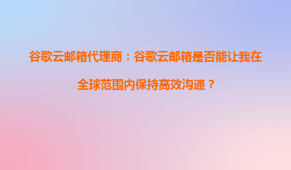 谷歌云邮箱:全球高效沟通的得力助手 在全球化商业环境中,高效的沟通工具是企业成功的关键。谷歌云邮箱(GoogleWorkspace邮箱)凭借其强大的功能和稳定的服务,成为众多企业和个人的首选。无论是跨国协作还是...