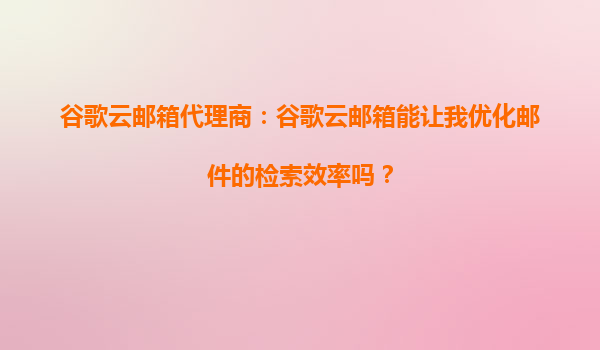 谷歌云邮箱代理商:谷歌云邮箱能让我优化邮件的检索效率吗? 在当今快节奏的商业环境中,高效的邮件管理已成为企业和个人提升生产力的关键因素之一。作为全球领先的云计算服务提供商,谷歌云邮箱(GmailforBu...