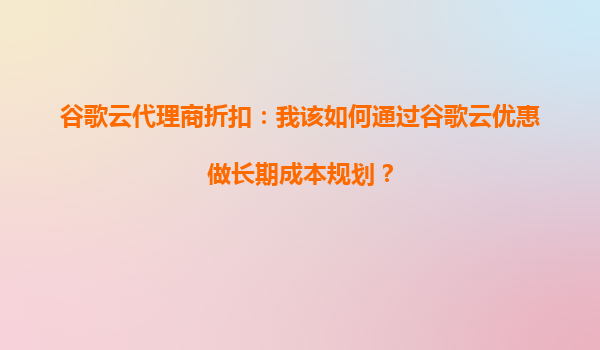 2025-10-05谷歌云代理商折扣:如何通过谷歌云优惠做长期成本规划? 一、谷歌云的核心优势 谷歌云(GoogleCloudPlatform,GCP)作为全球领先的云计算服务提供商,凭借其技术实力和全球化基础设施,为企...