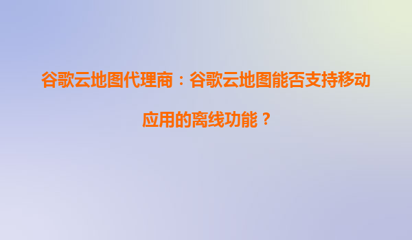 2025-10-05谷歌云地图代理商:谷歌云地图能否支持移动应用的离线功能? 引言 在移动应用开发中,地图功能已成为许多应用的核心组件之一。然而,网络连接不稳定或完全离线...