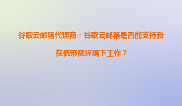 谷歌云邮箱代理商:谷歌云邮箱是否能支持我在低带宽环境下工作? 一、谷歌云邮箱的核心优势 谷歌云邮箱(GmailforBusiness)作为谷歌云服务的重要组成部分,凭借其强大的技术支持和全球化的基础...