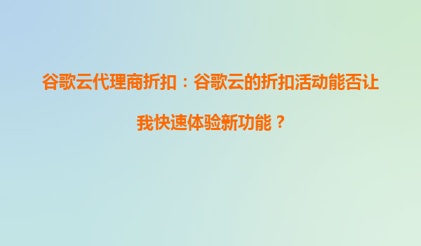 2025-10-05谷歌云代理商折扣:谷歌云的折扣活动能否让我快速体验新功能? 一、谷歌云代理商折扣的核心价值 谷歌云代理商提供的折扣活动,本质上是降低用户使用云计算资源的门槛。通过代理商渠道,企业或个人...