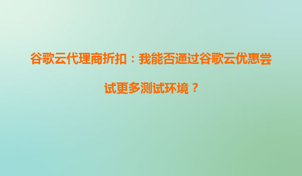 2025-10-03谷歌云代理商折扣:能否通过谷歌云优惠尝试更多测试环境? 一、谷歌云测试环境的价值与挑战 在数字化转型的浪潮中,云计算已成为企业构建测试环境的首选方案。谷歌云(GoogleCloud)凭借其全...