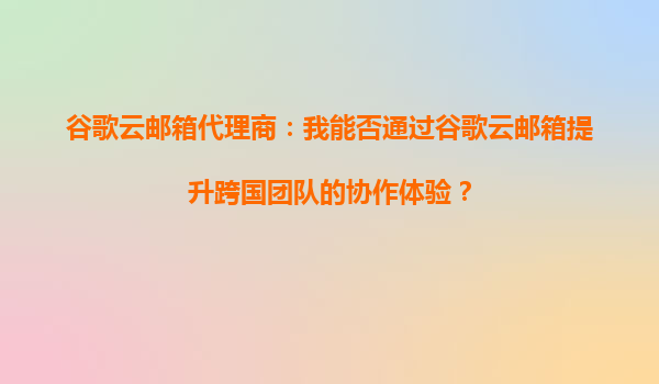 2025-10-03谷歌云邮箱代理商:如何通过谷歌云邮箱提升跨国团队的协作体验? 引言 在全球化背景下,跨国团队的协作效率直接影响企业竞争力。谷歌云邮箱(GoogleWorkspace)作为全球领先的企业级邮...