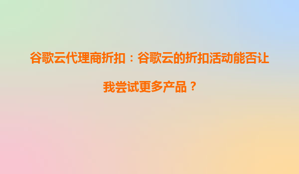 2025-10-02谷歌云代理商折扣:谷歌云的折扣活动能否让我尝试更多产品? 一、谷歌云代理商折扣的核心价值 谷歌云代理商折扣是谷歌云合作伙伴为企业和开发者提供的专属优惠方案,旨在降低用户使用云计算服务的...