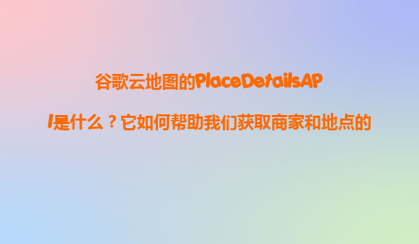 2025-11-08谷歌云地图的PlaceDetailsAPI解析与其商业应用价值 一、什么是PlaceDetailsAPI? 谷歌云地图的PlaceDetailsAPI是谷歌云平台(GoogleCloudPlatform,GCP)提供的一项核心服务,属于PlacesAP...