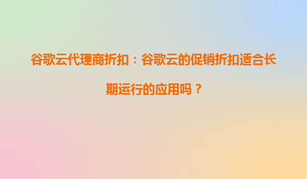 2025-10-02谷歌云代理商折扣:谷歌云的促销折扣适合长期运行的应用吗? 一、谷歌云的优势概述 谷歌云(GoogleCloudPlatform,GCP)作为全球领先的云计算服务提供商之一,凭借其强大的基础设施、灵活的定价模式以及...