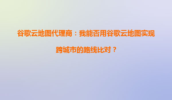 2025-09-30谷歌云地图代理商:我能否用谷歌云地图实现跨城市的路线比对? 一、谷歌云地图的核心能力 谷歌云地图(GoogleMapsPlatform)作为全球领先OGCIO(开放ennbsp;地理空间信息开放联盟)成...