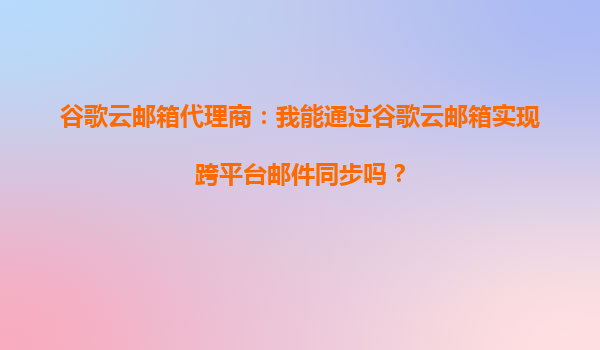 2025-09-30谷歌云邮箱代理商:我能通过谷歌云邮箱实现跨平台邮件同步吗? 一、谷歌云邮箱的跨平台同步能力 谷歌云邮箱(Gmail)作为全球领先的电子邮件服务之一,其核心优势之一便是强大的跨平台同步能力。无论您使用...