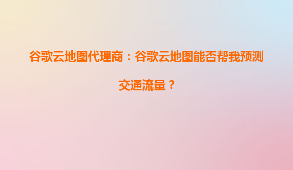 2025-09-30谷歌云地图代理商:谷歌云地图能否帮我预测交通流量? 谷歌云地图的交通流量预测能力 谷歌云地图作为全球领先的地图服务平台,不仅提供基础的导航功能,还能通过大数据分析和机器学习技术预测交通流量。借...