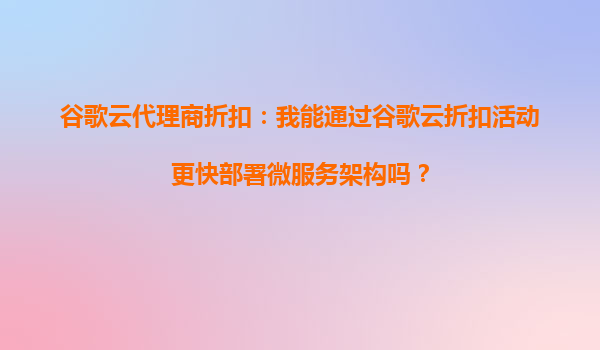 2025-09-29谷歌云代理商折扣:我能通过谷歌云折扣活动更快部署微服务架构吗? 引言 在数字化转型的浪潮中,微服务架构因其灵活性、可扩展性和高可用性成为企业技术升级的热门选择。然而,微服务的...