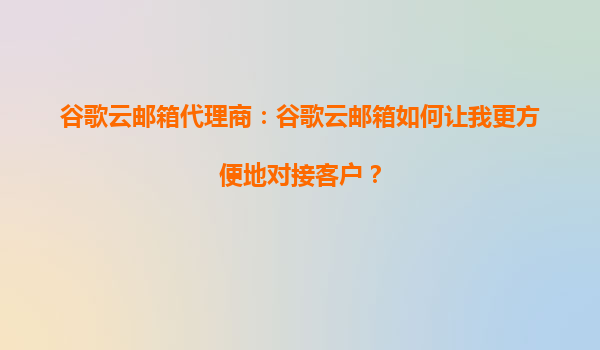 2025-09-29谷歌云邮箱代理商:谷歌云邮箱如何让我更方便地对接客户? 在当今数字化商业环境中,高效稳定的电子邮件系统是企业与客户沟通的核心工具之一。谷歌云邮箱(GoogleWorkspace,原GSuite)以其强大的功能和...